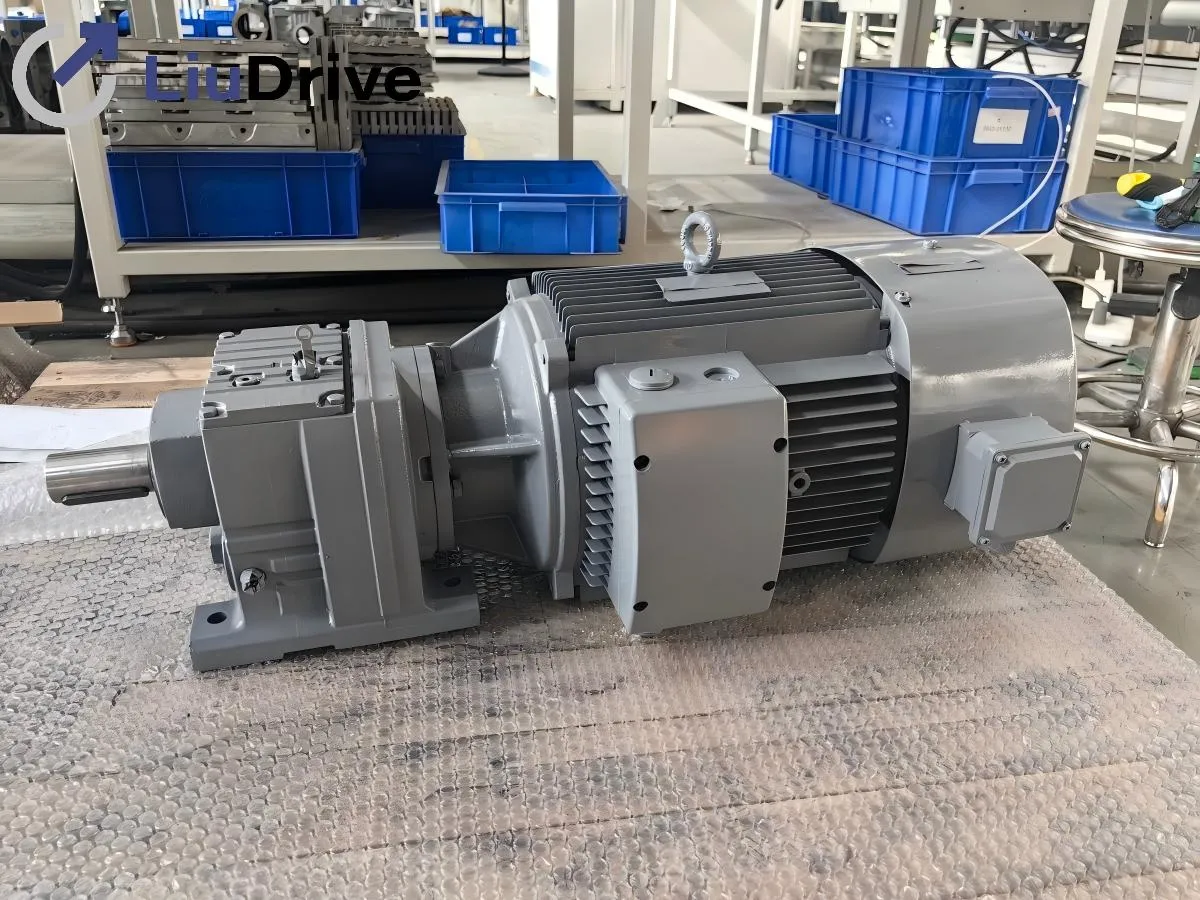 The LiuDrive R Series Helical Gearmotor features an integrated design of a modular motor and reducer, allowing for rapid delivery (7-15 days). Engineered to be dimensionally interchangeable with SEW units, it offers an inline shaft configuration with a compact structure, small volume, and low noise. It is designed to accommodate mounting positions and methods in all directions and sides.